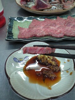カツオは釣りたてで時間が経ってないんで身が全然違う!!活かってる~!!牛刺しは贅沢に厚く切りました。