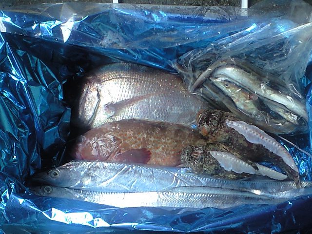 伊勢えび、ハシリ貝、ホラ貝、むし鰈、ひげながえび。