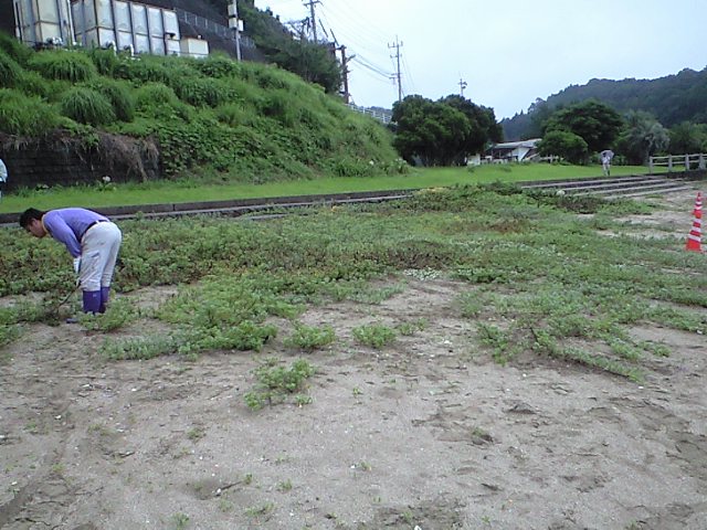 黒い所は機械が通った後、そして上に出てきた石ころを拾う。
