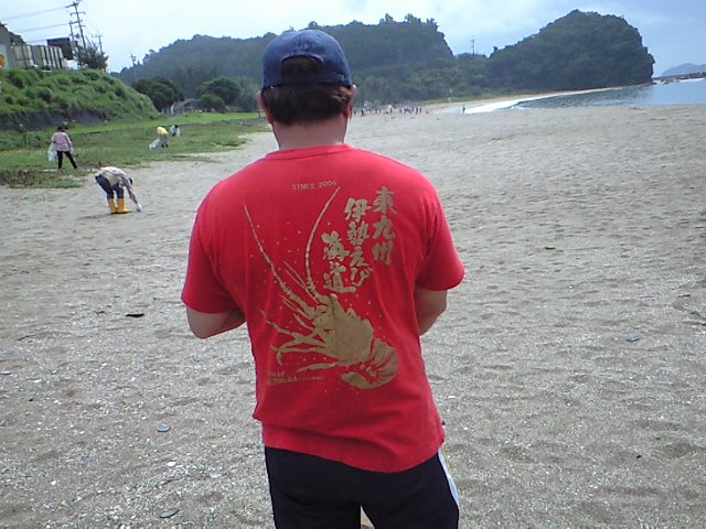この赤色のTシャツは、東九州伊勢えび街道のTシャツ。