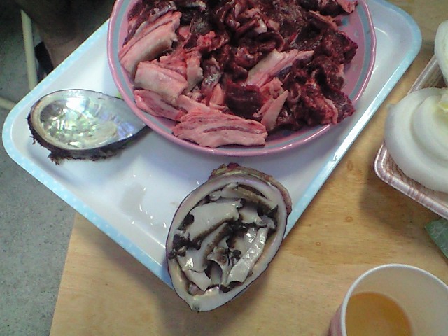 アワビは岡の会長が後輩と一緒に潜って捕ってきたもので、他にもタカジリ、ニナいろいろありました。