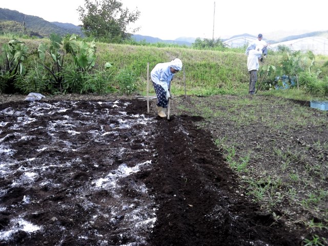 この前は大根うゆる段取りが分からんかったんで丸金の古株「いっちゃん」からとぎになってもらい、習いながら種まきしました。