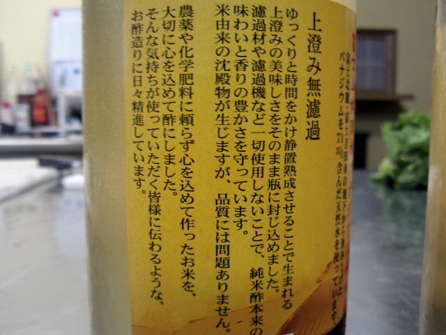 「農薬や化学肥料に頼らず心を込めて作ったお米を、大切に心を込めて酢にしました。そんな気持ちが使っていただく皆様に伝わるような、お酢造りに日々精進しています。」