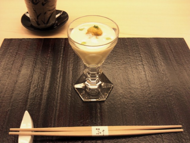 まずは、豆腐のスリ流しです。中には雲丹、湯葉、枝豆が入ってます。