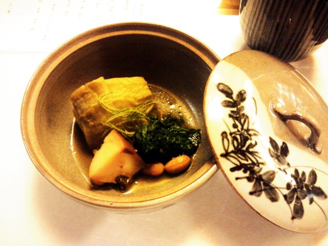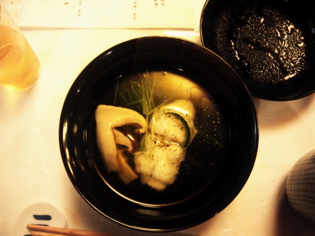 椀物 焼目付鱧 松茸 水菜 柚子